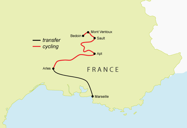 After breakfast in our hotel, you’ll be transferred with your bikes and luggage to Marseille airport for your flight home. Here we say our farewells and the trip ends.