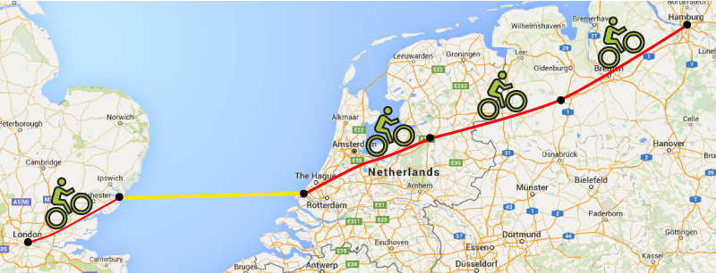 Cycle from London to Hamburg with More Adventure! Over four days you will cycle from London through eastern England, The Netherlands and Germany to the iconic city of Hamburg.