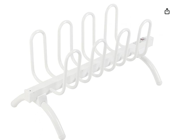 Enter the electric shoe dryer. This handy gadget has been a life (and relationship) saver over the years. It holds four pairs of shoes and takes even the wettest of shoes to bone dry. For particularly wet shoes we have a rubber drip tray that slips under to collect that delightful road water. It’s also perfect for drying gloves, buffs, booties and anything else that’s had a soaking.
