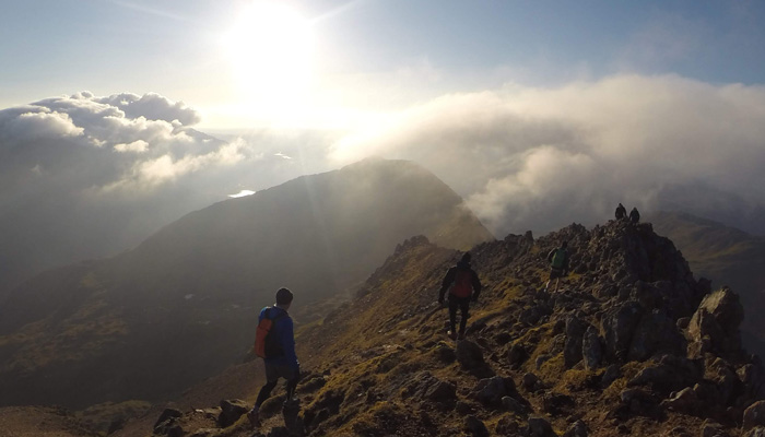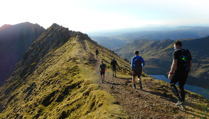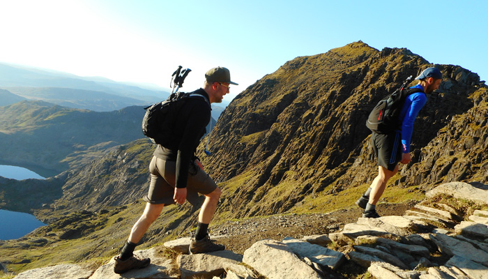 After a safety brief, overview of the day and kit check, we’ll begin by following the Pyg track then embark upon arguably the most technically demanding section of the challenge, the narrow edge of Crib Goch. This is exposed in parts demanding a good head for heights and some hands-on scrambling. Our first summit is the peak of this infamous ridge, Crib Goch (Red Ridge, 3028ft/923m). From here we’ll continue along the ridgeline to our second peak which is the second highest in Wales, Crib-y-Ddysgl (Ridge of the Dish, 3494ft/1065m) or Garnedd Ugain (Cairn of the Twenty) as it’s also known.
