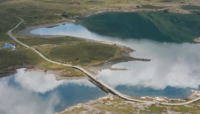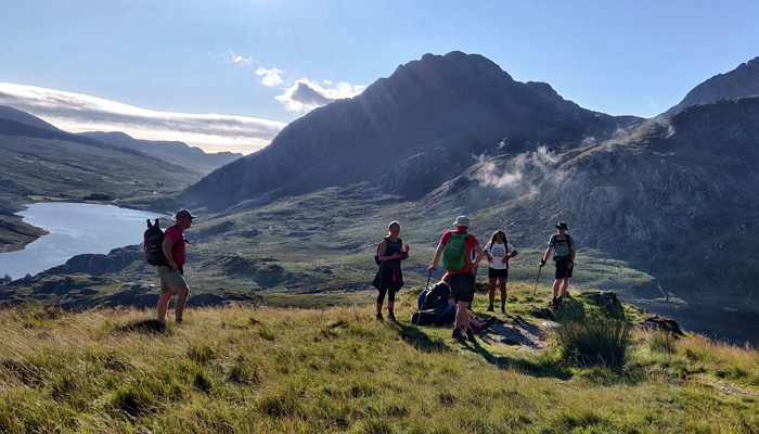 Our route begins from the popular Pen y Pas car park at the top of the Llanberis Pass. Here you’ll meet the rest of the group and your leaders. There are toilets available and you’ll also be able to place a bag with extra snacks, clothing and drinks in our support vehicle for our planned refreshment stop.