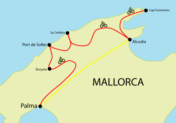 This morning you will be transferred to Palma airport for your flight home with your bicycle and luggage. Here the trip ends and we say our farewells.